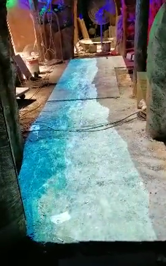 地面互動投影系統是集虛擬仿真技術、 圖像識別技術于一身的互動投影項目, 包括水波紋、翻轉、碰撞、擦除、避讓、跟隨等表現形式。