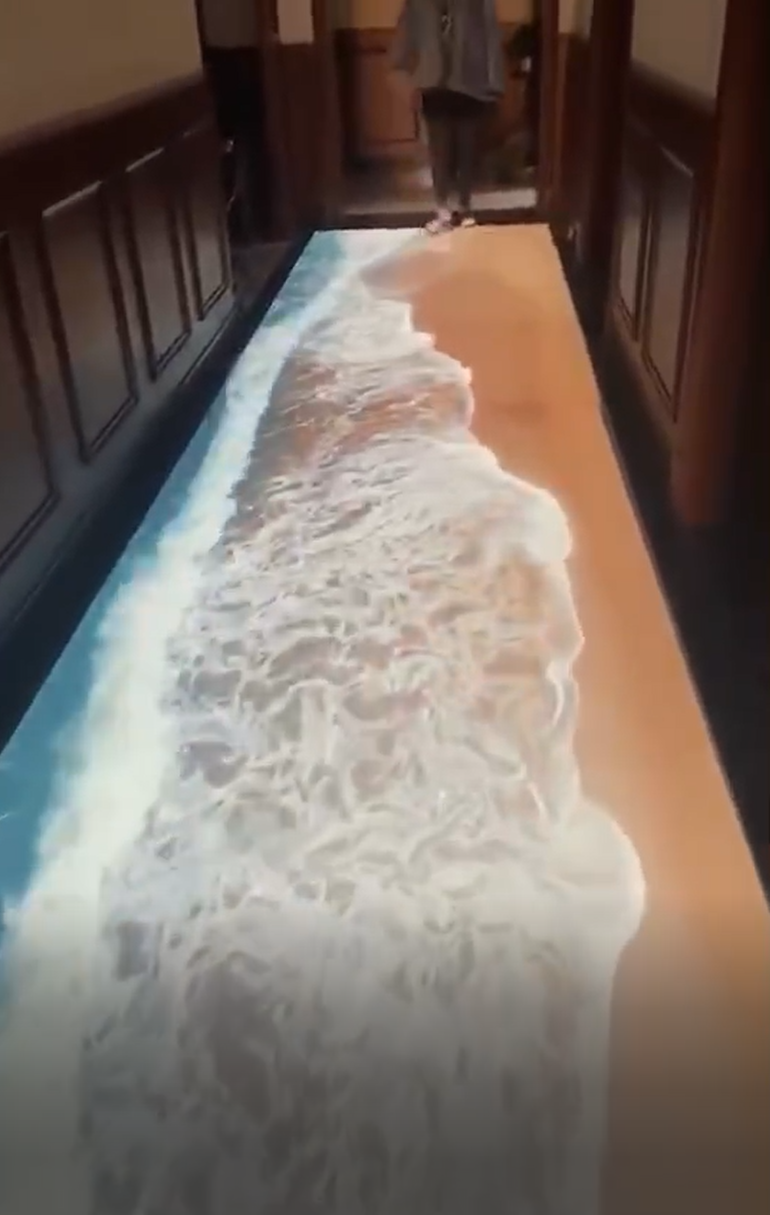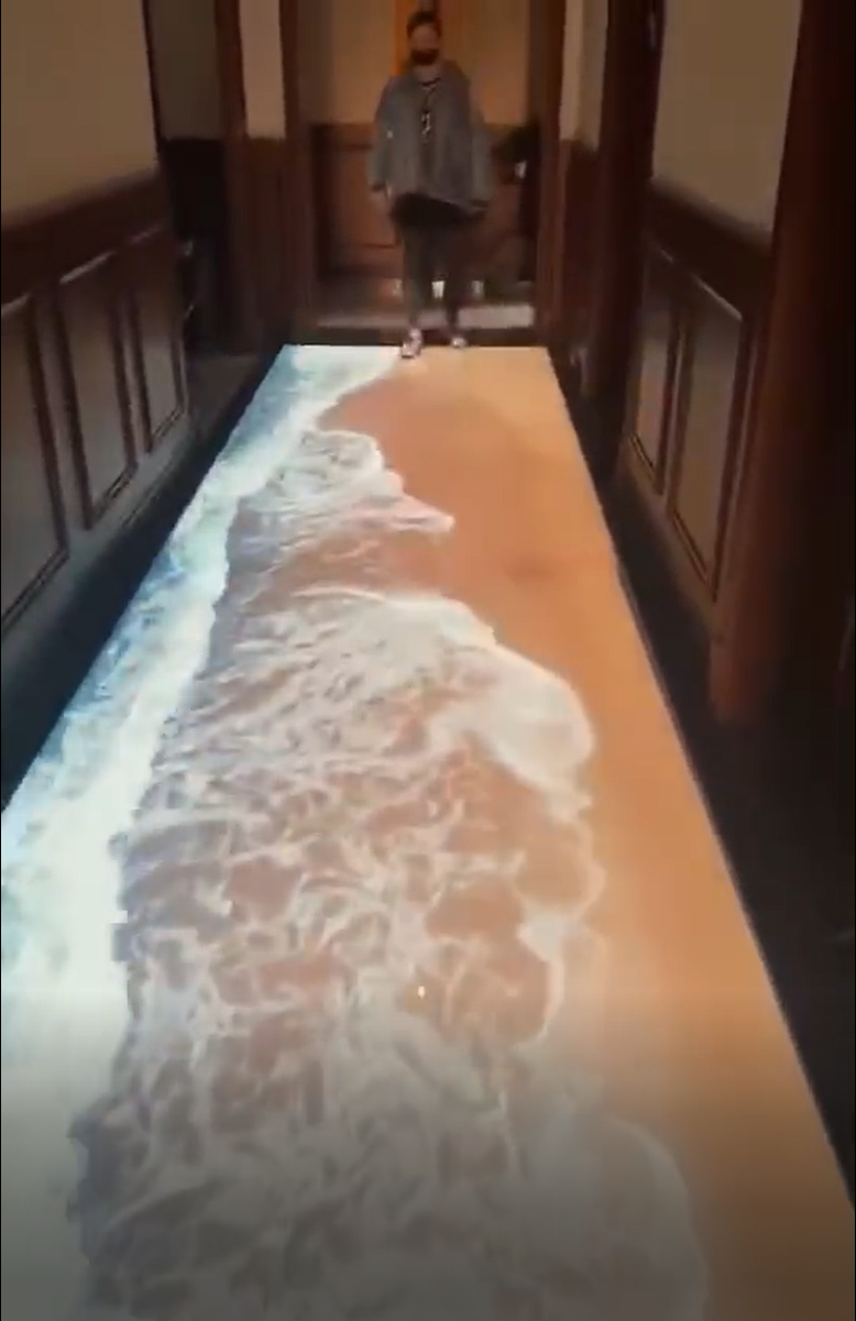 觀眾通過身體動作來與地面的圖像進行互動,各種特效影像在腳下綻放,帶來一種全新的奇特的體驗。