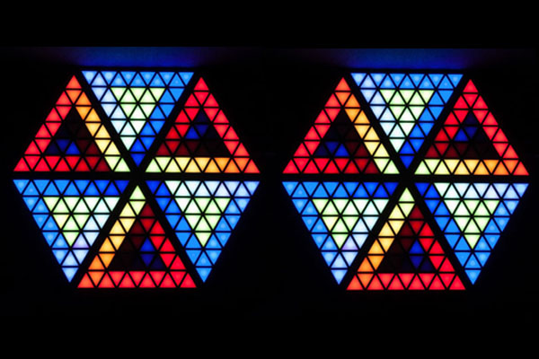 絢麗百態,簡約而唯美,是造型藝術最完美的混搭。LED?裸眼3D?三角燈,平面呈現立體,科幻、時尚,色彩隨心所變。外觀布設具有更強的組合和藝術設計,彩色邊框是最美的區隔裝飾線,不同顏色的邊框搭配讓空間彌漫著藝術味道,藝術亮化的代表作,亮或不亮,皆屬藝術品